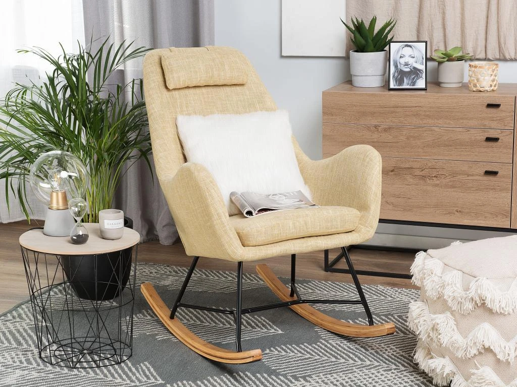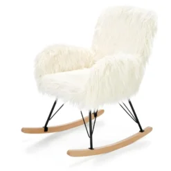 MERIDA – Fauteuil à Bascule Blanc Avec Assise Capitonnée Et Bouclettes