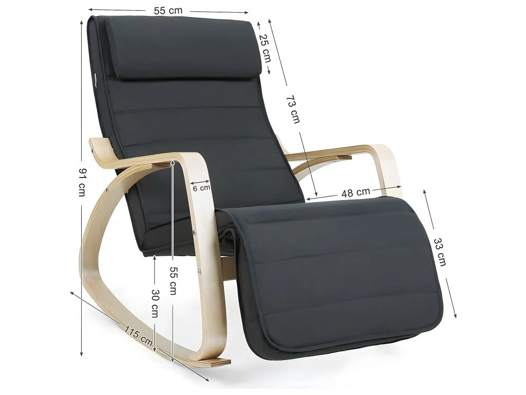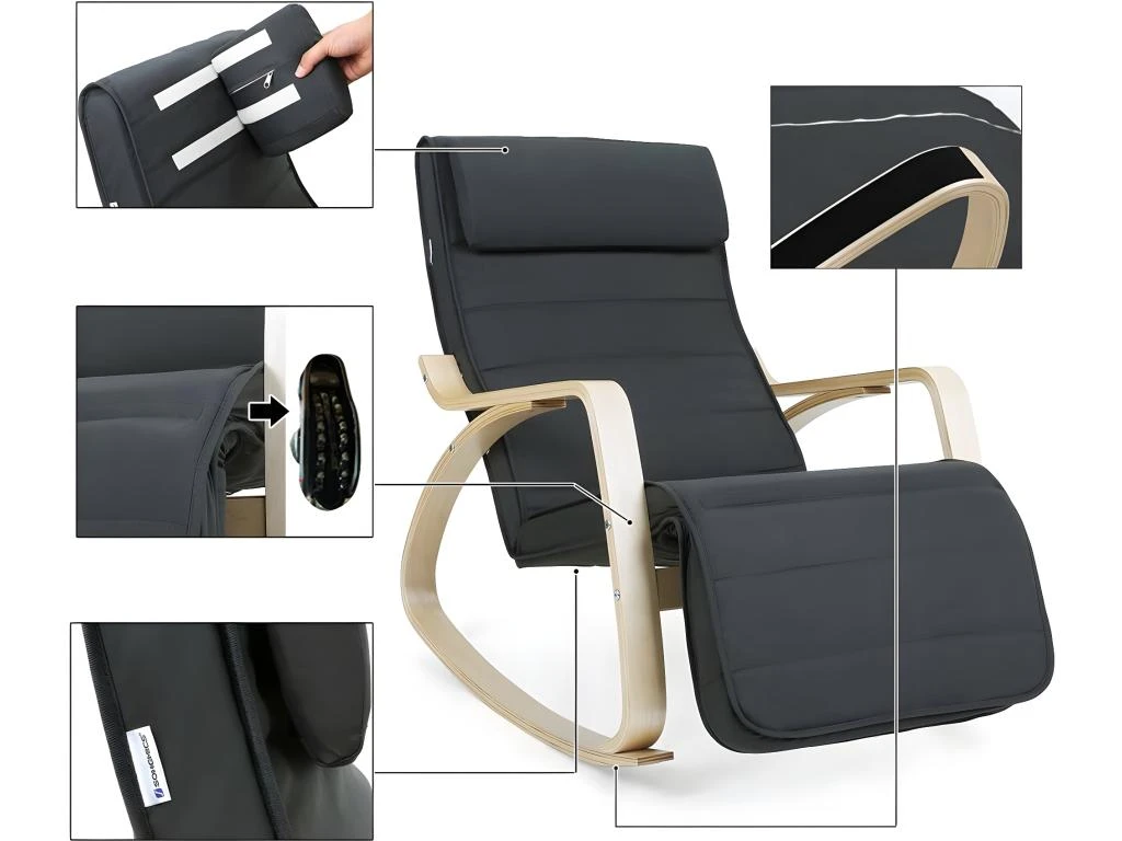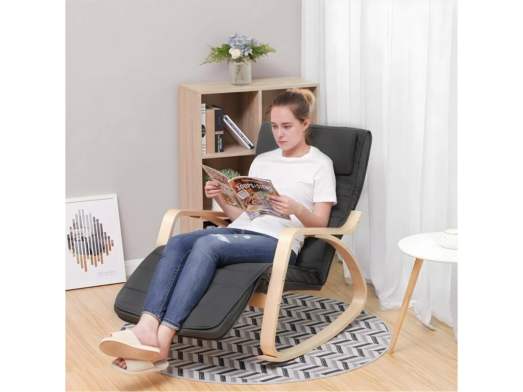 Découvrez notre Chaise à bascule accoudoirs et repose-pieds avec 5 positions pour meubler votre salon. Très confortable, notre chaise vous permettra d’installer vos jambes comme vous le souhaitez avec son repose-pieds disposant de 5 positions différentes. Ses tons clair lui permettent de s’adapter à tous les intérieurs.