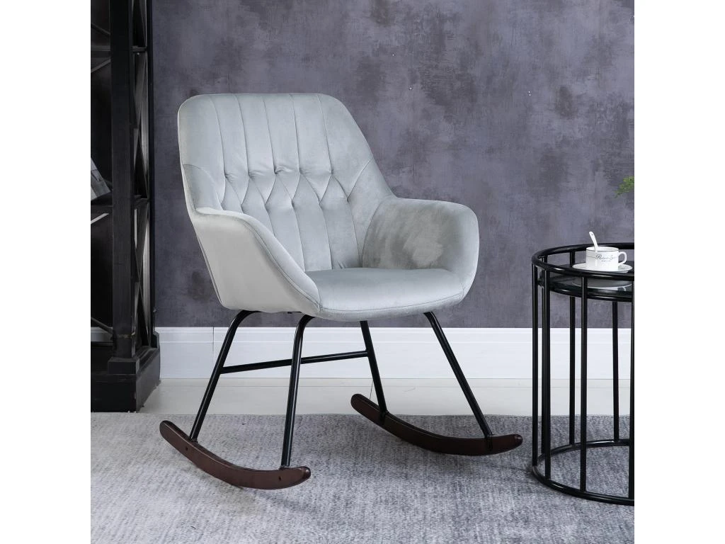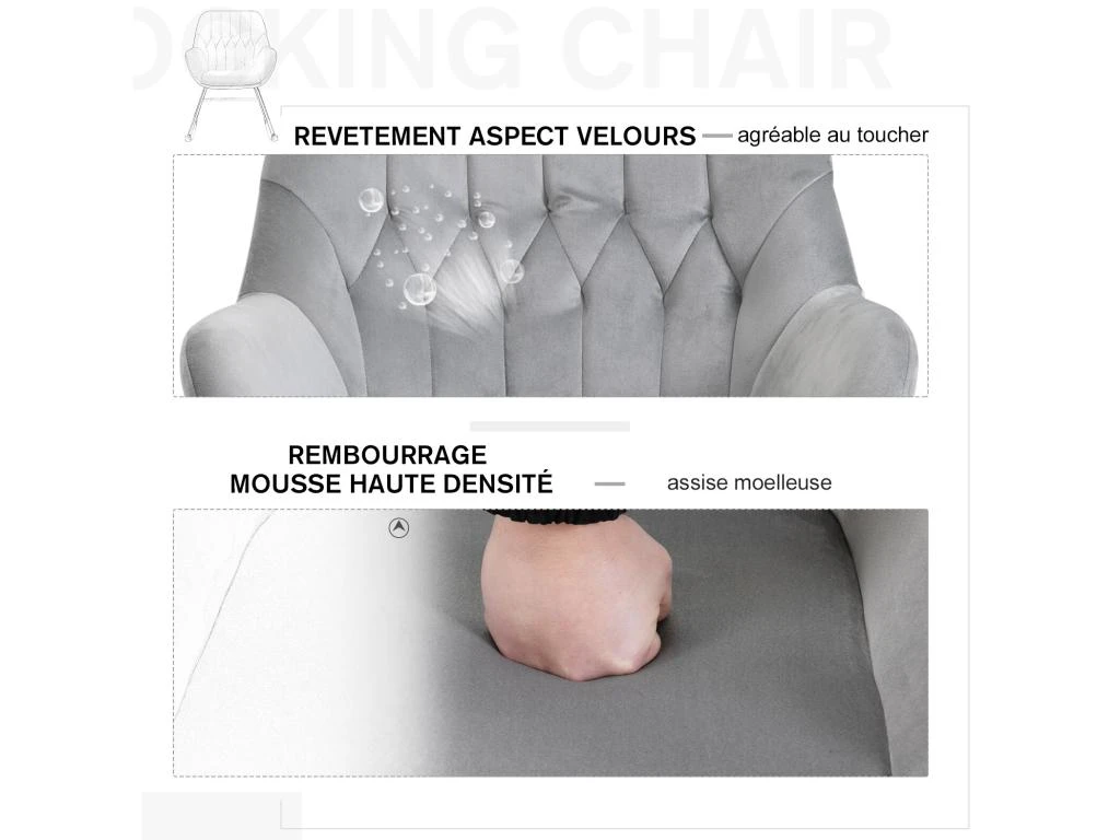 – Fauteuil à bascule design contemporain style cocooning avec formes arrondies et texture aspect velours idéal pour ajouter une touche tendance à votre intérieur