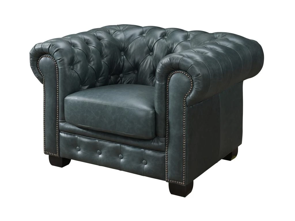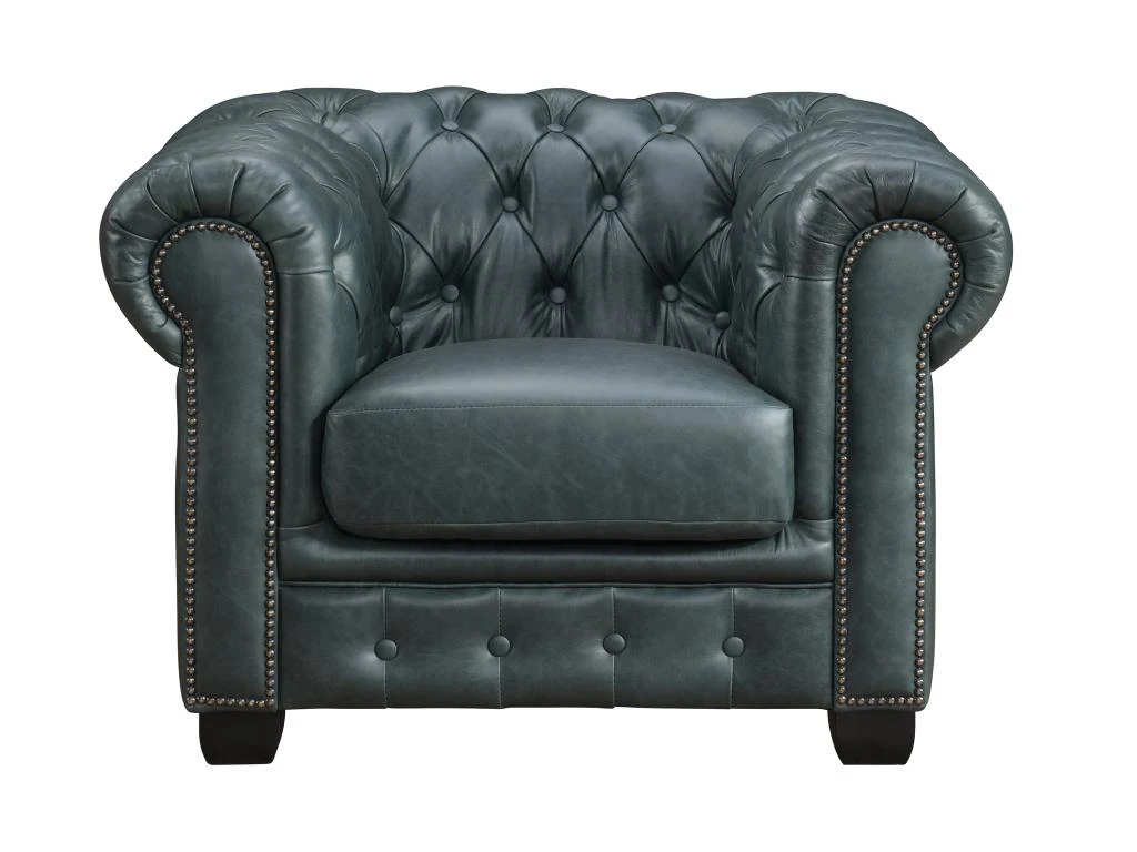 Fauteuil Chesterfield BRENTON 100% Cuir De Buffle Premium – Vert De Gris