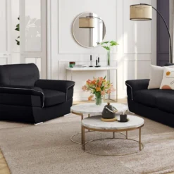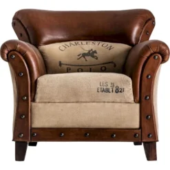 Fauteuil De Relaxation CHARLY Repose-pieds Siège Pivotant Dossier Inclinable Assise Rembourrée, En Tissu Vintage Brun Pieds Noirs