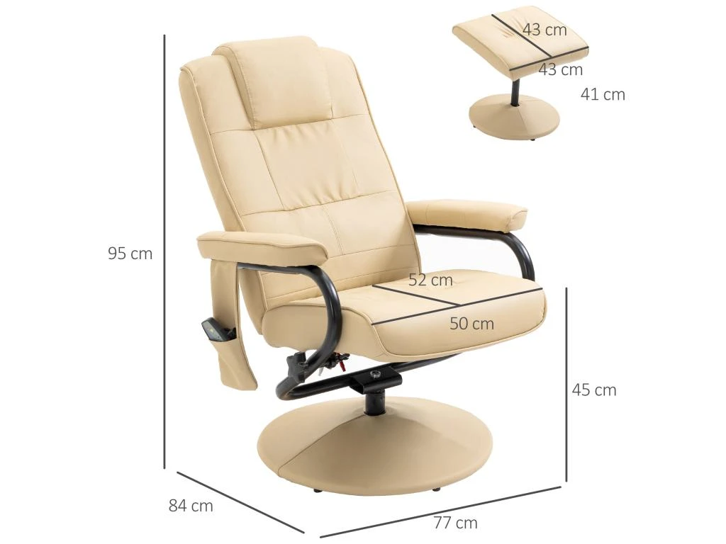 – 10 points de massage par vibration pour les muscles de la tête, de la nuque, du dos, du postérieur et des mollets (6 points dans le dossier, 2 dans l’assise et 2 dans le repose-pieds)