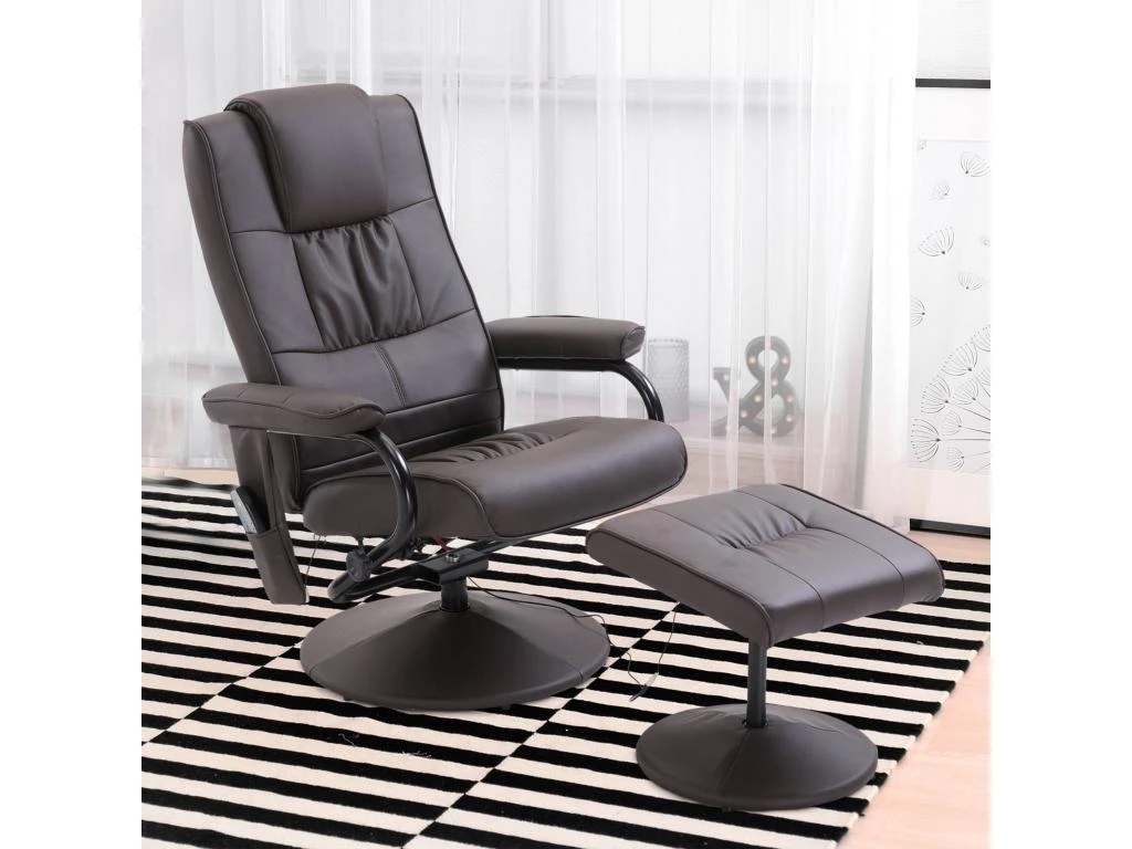 Fauteuil De Massage Et Relaxation électrique Pivotant Inclinable Avec Repose-pied Revêtement Synthétique Chocolat