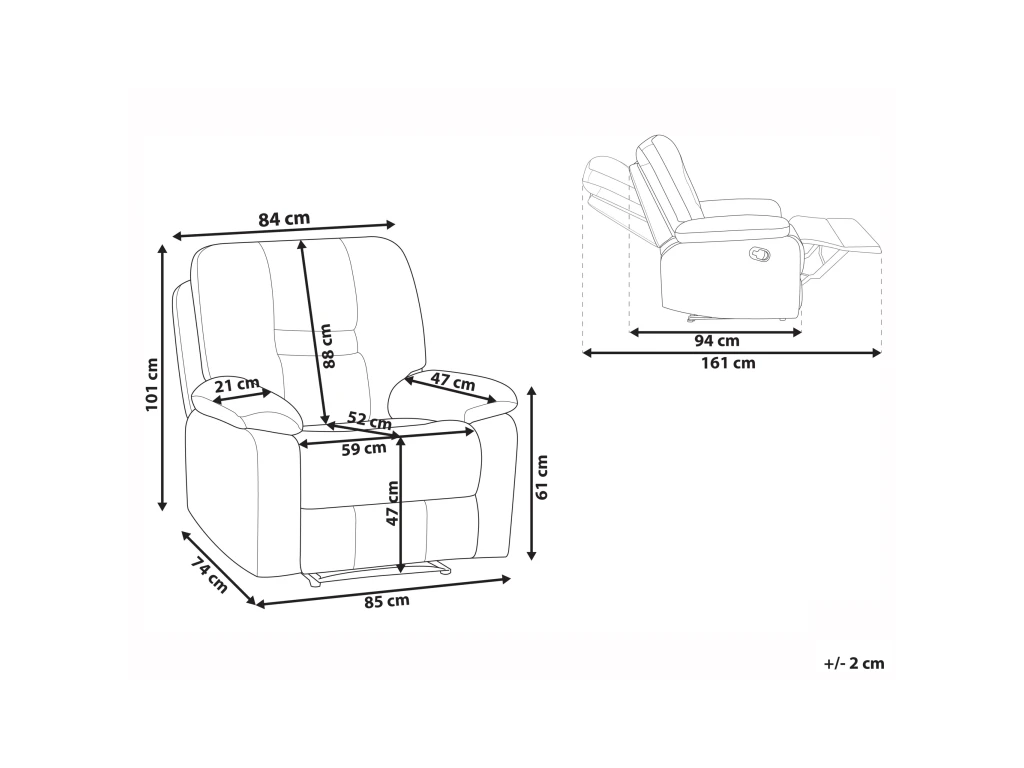 Dimensions des accoudoirs: 61 cm