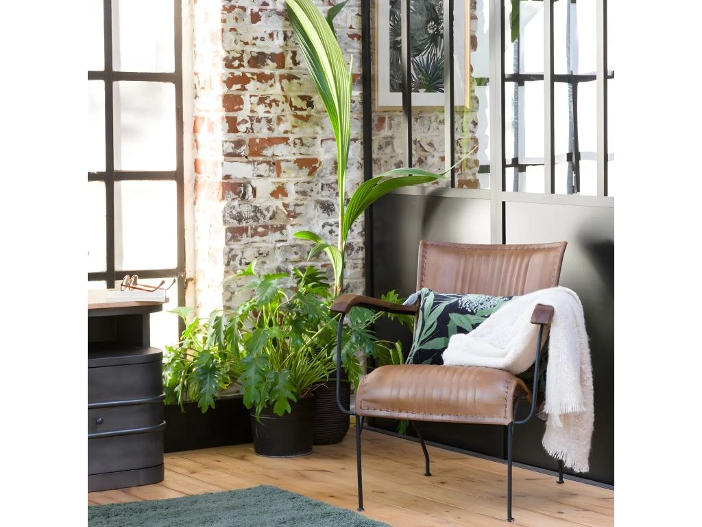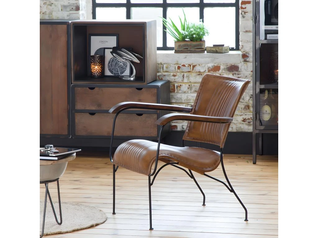 Entièrement revêtit de cuir de buffle marron, ce fauteuil vintage dispose de détails qu’on retrouve ici et là comme les coutures apparentes, l’effet strié et surtout les accoudoirs prononcés sont très révélateurs de la tendance vintage et participent pleinement au coup de cœur provoqué par ce fauteuil ! Son assise dessinée gagne à être essayée tant elle est agréable au toucher et confortable.