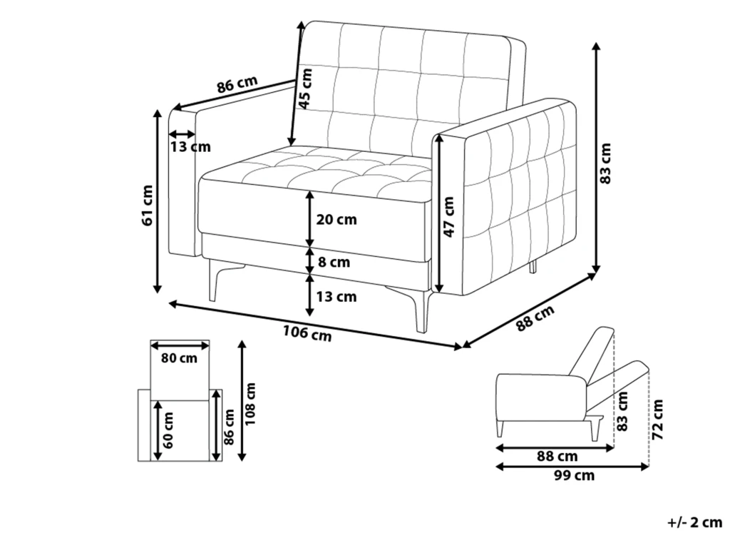 Caractéristiques clés: Dossier réglable en 3 positions, Offre un grand moment de détente, Garantie du meilleur confort d’assise, Un confort d’assise optimal, Style élégant, Capitonnage décoratif classique, Cuir PU de qualité offrant un look naturel, S’incline entièrement à plat