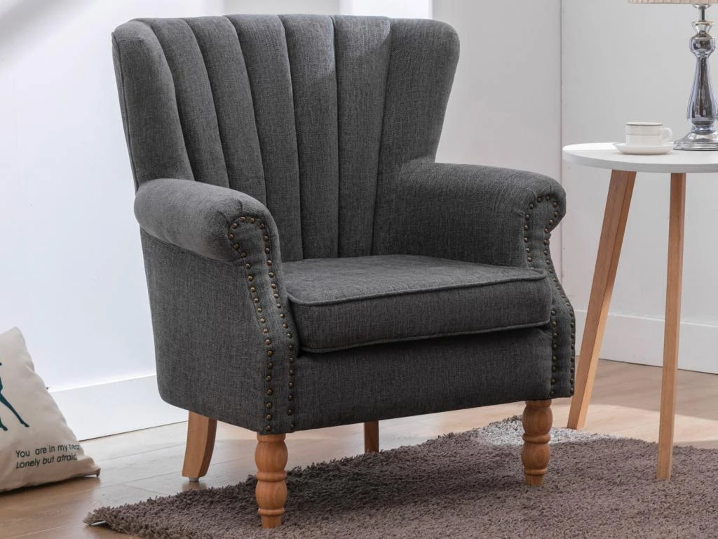 Vous souhaitez redonner du charme à votre intérieur ? Optez pour le fauteuil en tissu BATOUMI ! Sa finition cloutée sur le devant, ses pieds en bois style vintage et son dossier original sont une valeur sûre pour apporter du style à votre salon.