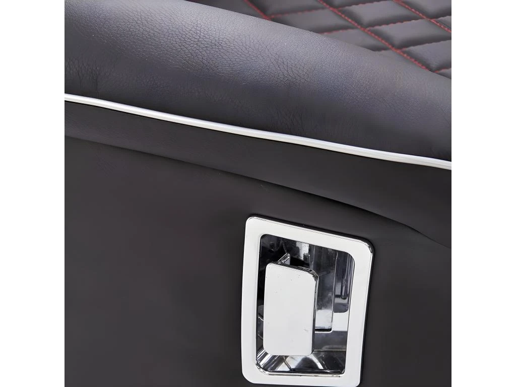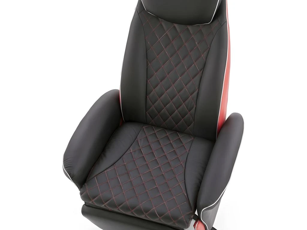 Dimensions : * Largeur : 79 cm * Profondeur : 93 ÷ 145 cm * Hauteur totale : 92 ÷ 112 cm Poids : 29.50 kg Matériaux : cuir synthétique/Acier peint Couleur : Noir/Rouge Accessoires de montage. Notice de montage Meuble à monter soi-même Garantie fabricant 24 mois Norme CE Éco-mobilier inclus
