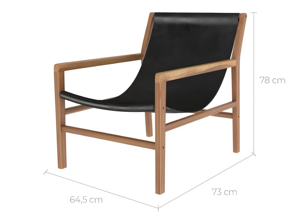 L’alliance d’une structure en bois de teck massif et d’une assise en cuir de vachette noir offre un contraste d’un chic fou. L’assise aux allures de hamac séduit par sa souplesse et son confort. L’élégance de ce modèle se double d’une résistance jusqu’à 150 kg, ce qui est un atout supplémentaire.