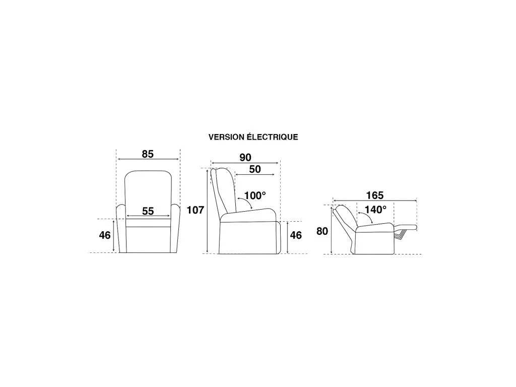 La mécanique dite « dos au mur » ne réclame que 12 petits centimètres de distance d’un mur pour développer intégralement le mécanisme incluant le repose pieds (inclinaison de 100° à 140°).