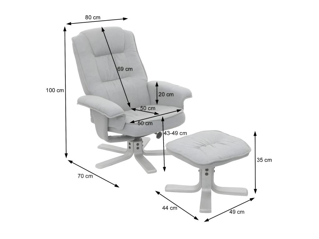 Hauteur des accoudoirs (mesurée à partir du siège) : 20 cm
