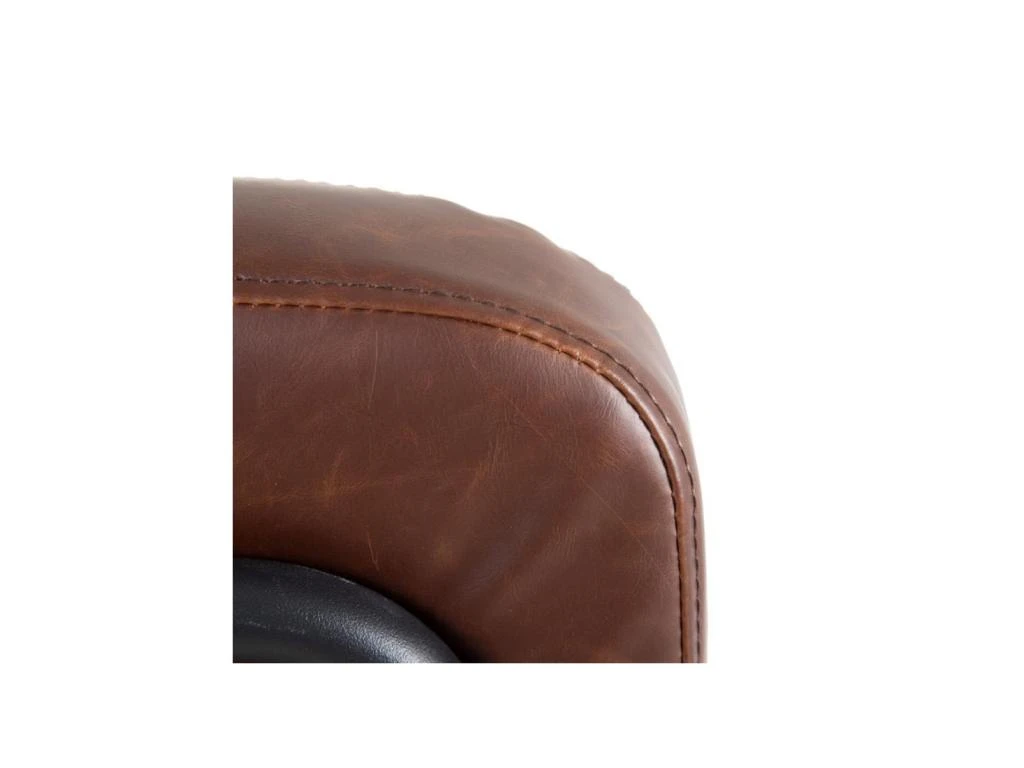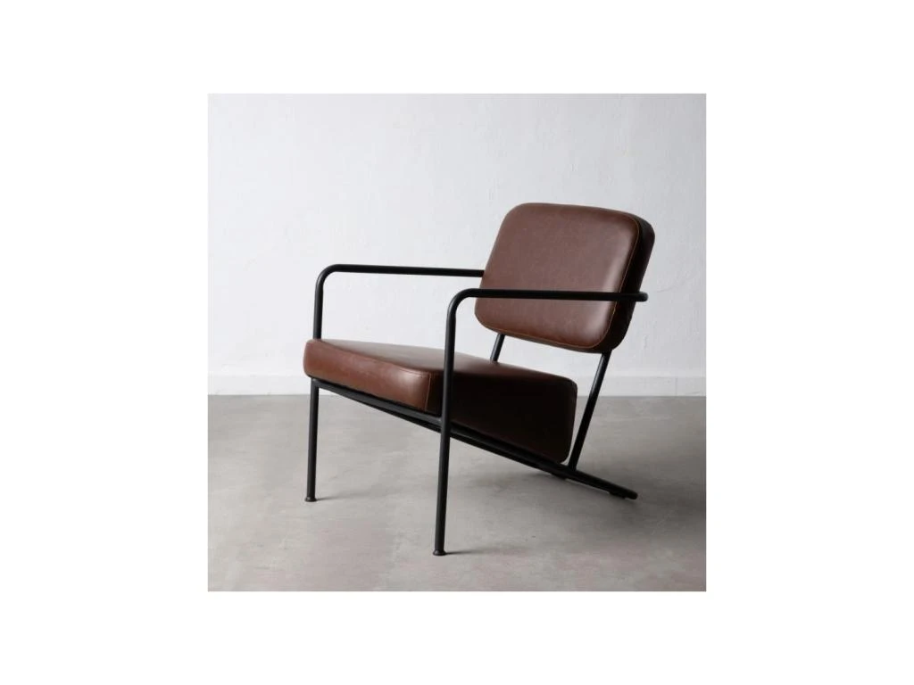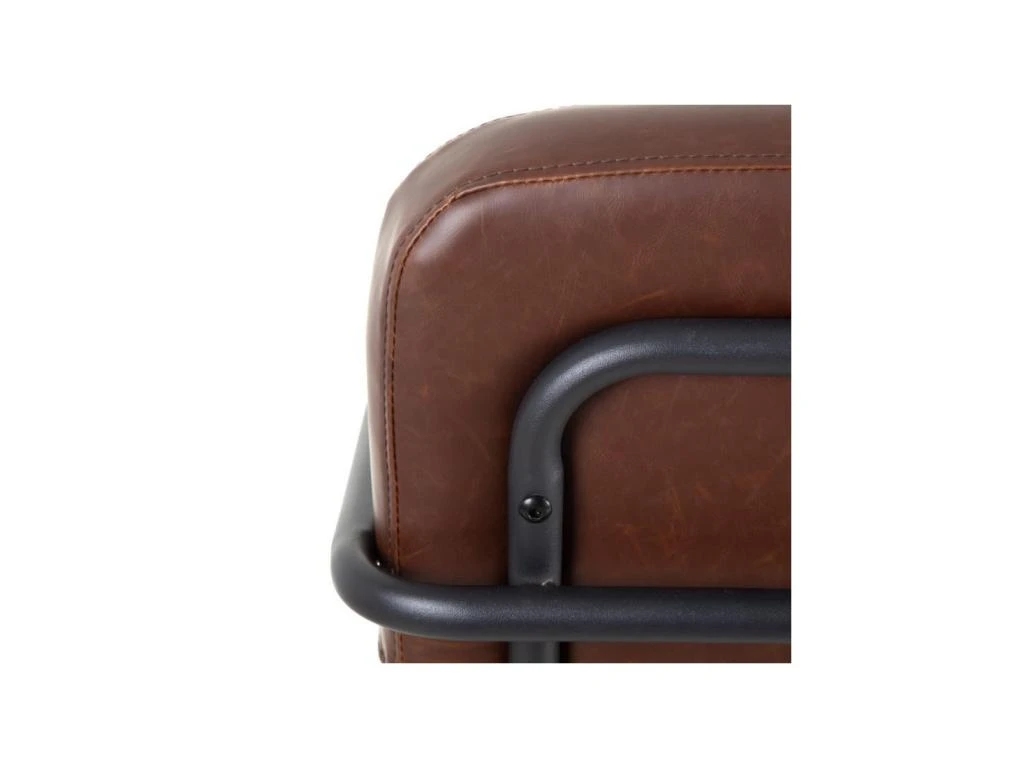Le dossier et l’assise sont revêtus de simili Cuir teinte Marron à la finition nuagée lui offrant un look Vintage et une authenticité certaine, robuste et facile d’entretien il vous apportera satisfaction durablement.