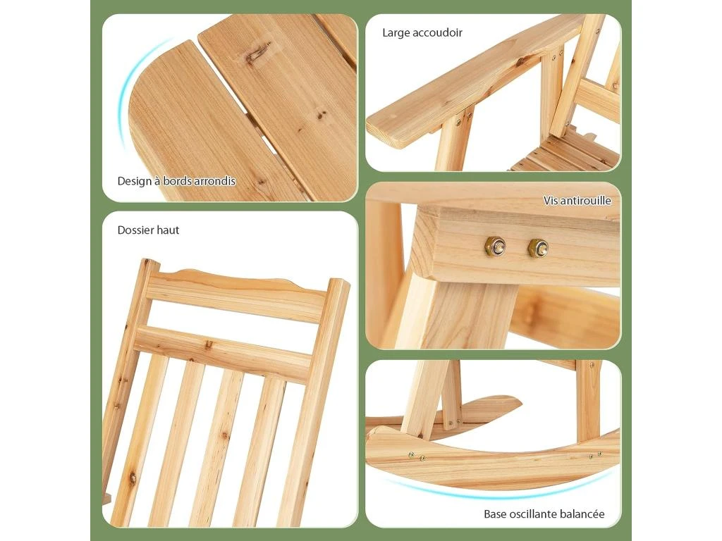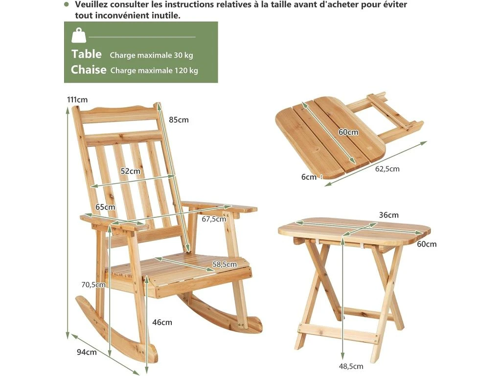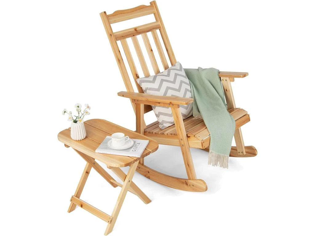 - 【Matériau en bois sélectionné】Fabriqué en bois de sapin de haute qualité avec une surface sans aspérité, le fauteuil à bascule extérieur et la table d’appoint sont imperméables, résistants à la décoloration et résistants aux intempéries pour mieux s’adapter à l’environnement extérieur. Et les vis antirouille assurent une durabilité supplémentaire.