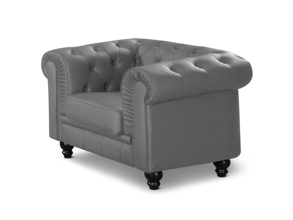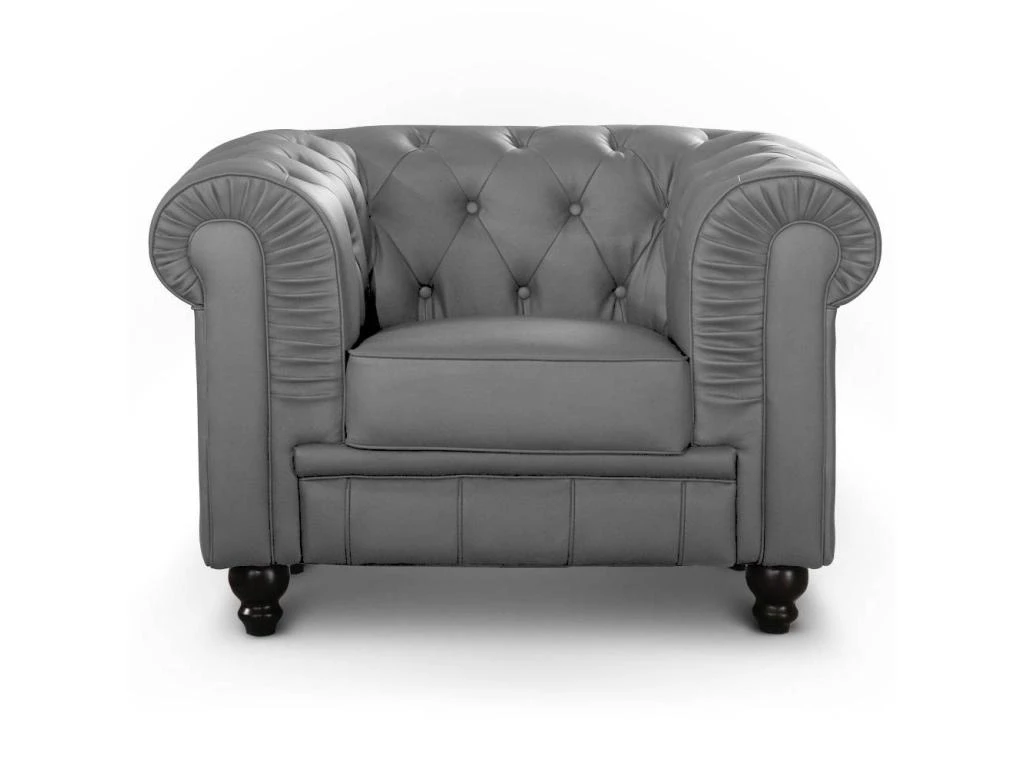 Le Chesterfield est un type de fauteuil réputé pour son allure cosy et élégante. Notre modèle présente un éventail de plis au niveau de ses larges accoudoirs et un capitonnage confortable.