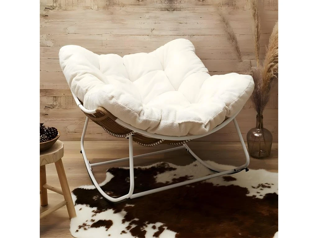 Fauteuil à Bascule Blanc avec Assise Capitonnée et Bouclettes de la gamme Merida.