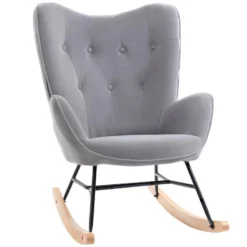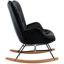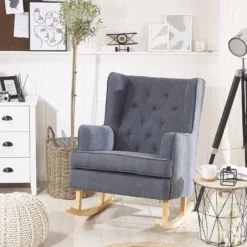 Fauteuil à Bascule Et Pieds En Bois Massif D’hévéa Bleu Velours