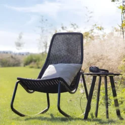 Tom – Rocking-chair En Résine Tressée Et Métal – Couleur – Noir