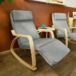 Rocking Chair Fauteuil à Bascule Berçante Avec Repose-pieds Réglable Bouleau+ 1 Pochette, FST18-DG