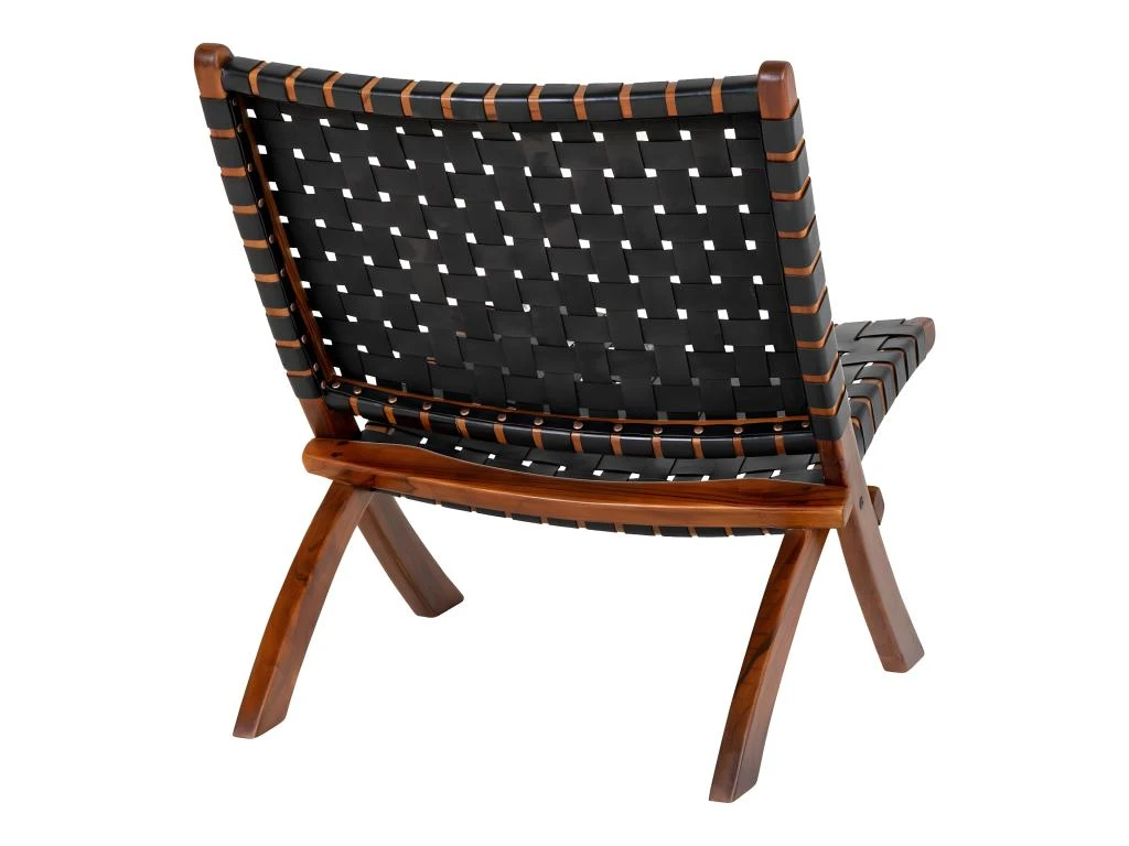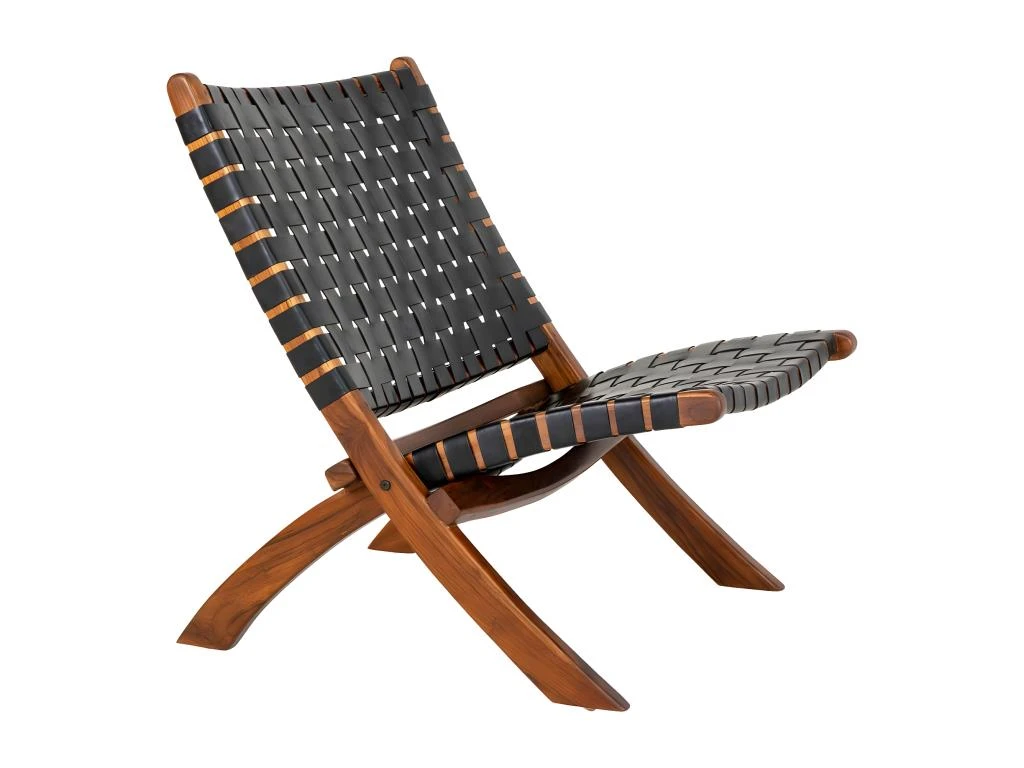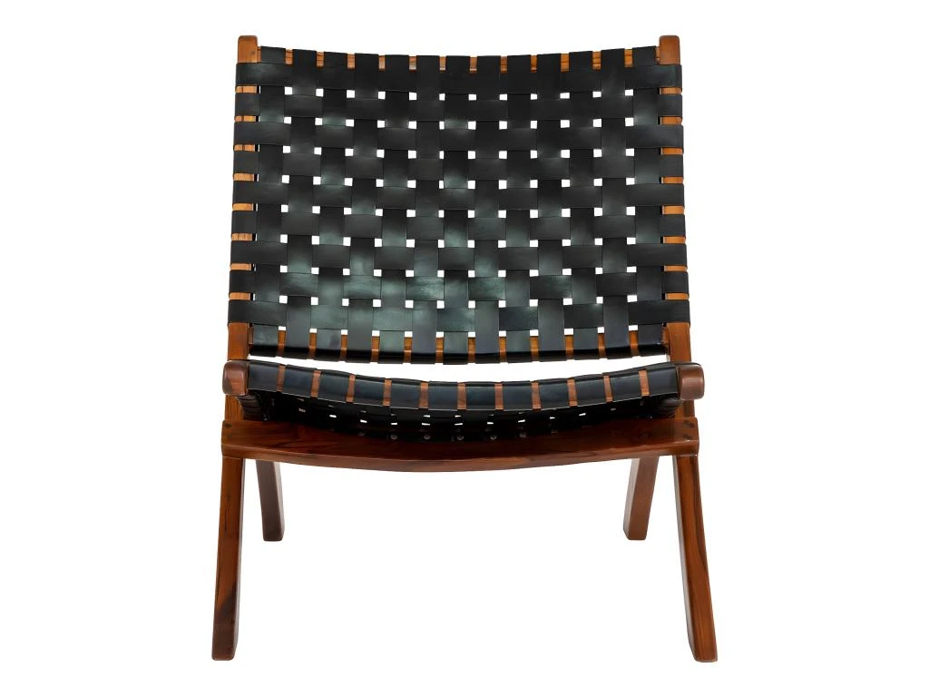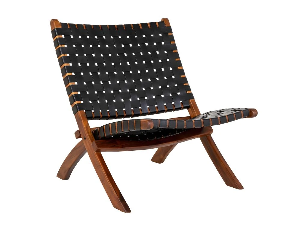 RIMINI – Fauteuil En Teck Massif Et Lanières Cuir Noires