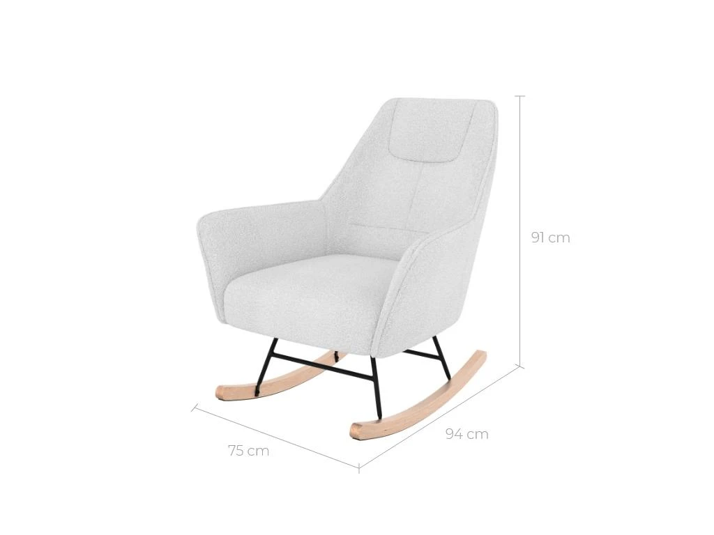 Le cocooning sera à l’honneur de votre pièce à vivre grâce à notre rocking chair Shaun blanc. Avec ses dimensions généreuses L 75 x P 94 x H 91 cm et sa silhouette accueillante, vous disposerez d’un must du confort. Dans votre chambre à coucher, il pourra également participer à vos moments de calme.