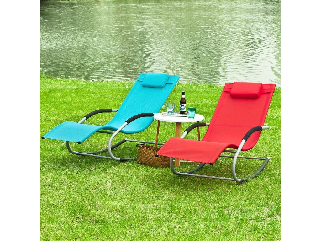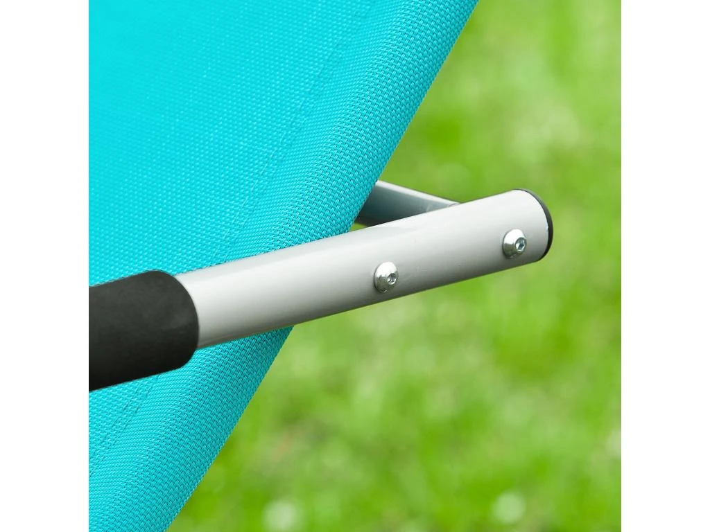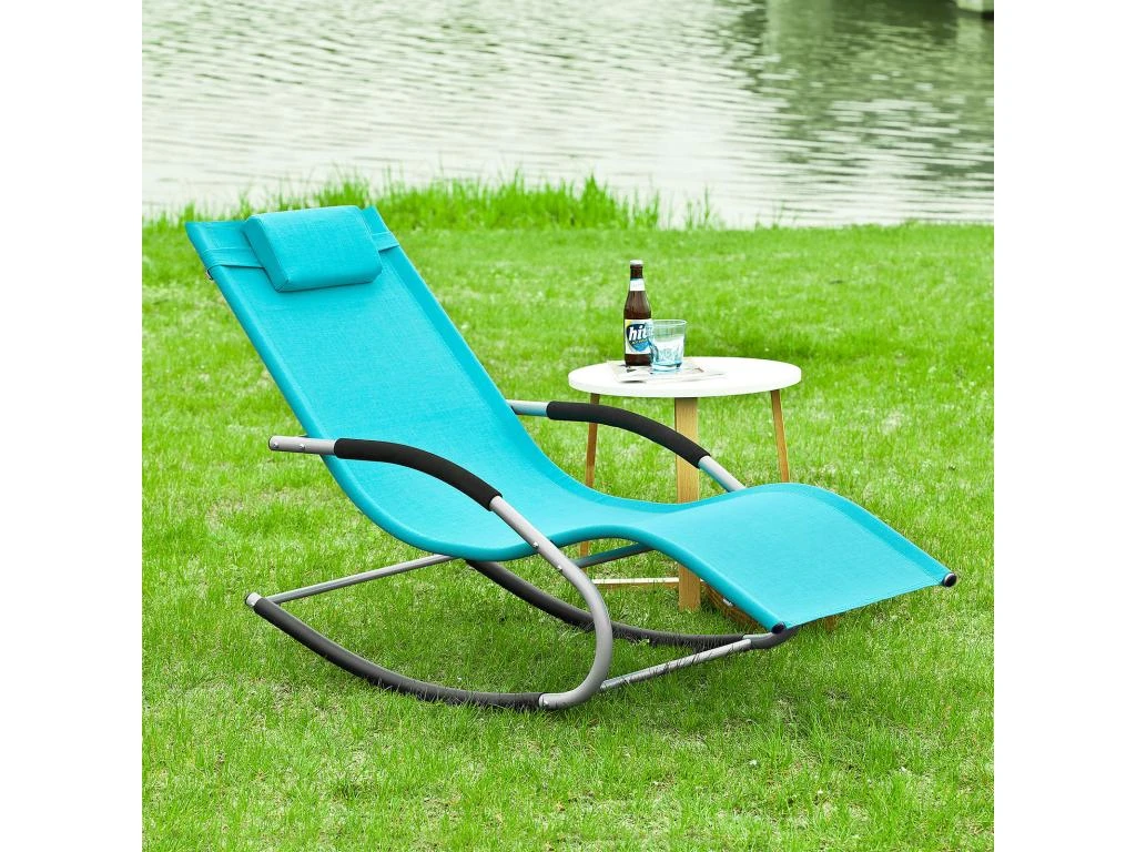 SoBuy 2x OGS28-HB Lot de 2 Fauteuils à bascule Transats de jardin avec repose-pieds, Bains de soleil Rocking Chair – Turquoise Extérieur ou/et Intérieur ! Ideal pour Jardin, Camping, balcon, bureau, salle de séjour, plage, etc. ! Vous pouvez vous asseoir et vous coucher dans une position idéale et agréable. Cette chaise longue vous offrira de merveilleux moments de détente à l’extérieur ou/et à l’Intérieur. – Assise confortable; – Appui-tête amovible; – Repose pieds et accoudoirs; – 1 pochette latérale; – Structure en tube de métal finition antirouille, très robuste et solide. Caracteristiques :– Matériel : Structure métal, finition antirouille, assise en textilène. – Dimensions: Voyez l’image. – Poids de l’envoi : 12kg. – Capacité de charge: jusqu’à 150 kg. – Cet article ne se plie pas. – À monter soi-même facilement. Livraison: 2 x Fauteuils, notice de montage. Avec la notice de montage illustrée et les pièces numérotées, le montage est facile. 7 couleurs à choisir: beige (OGS28-MI), noir (OGS28-SCH), gris (OGS28-HG), turquoise (OGS28-HB), marron (OGS28-BR), vert (OGS28-GR), ou rouge (OGS28-R).Vous pouvez également acheter la housse de coussin pour le lit à bascule (OGS28-P01-beige, OGS28-P02-noir) chez nous.Facture fournie. Toute commande passée avant 14h est remise au transporteur le jour même. Livrable en France.Veuillez SVP laisser votre adresse complète et mentionner le code d’accès, l’interphone et le numéro d’appt, s’ils existent, quand vous passez la commande!
