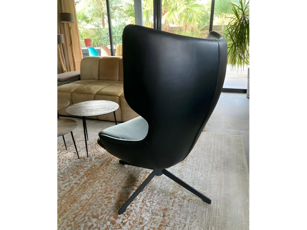 Faites de ce fauteuil la pièce forte de votre déco ! La hauteur du dossier de 70 cm (depuis l’assise) permet d’appuyer la tête. Piètement en étoile, 4 branches, en acier noir mat.