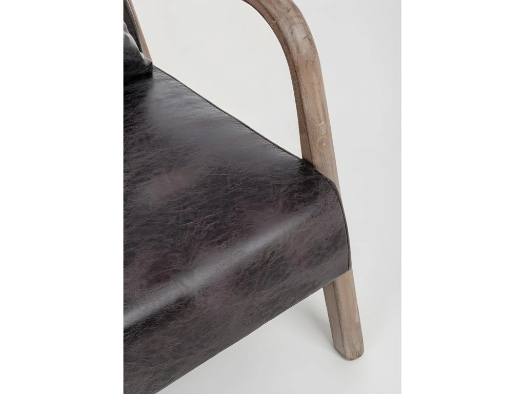 Le fauteuil Vincent est tapissé d’une matière aspect « vieux cuir » marron blanchie lui donnant son look vintage.
